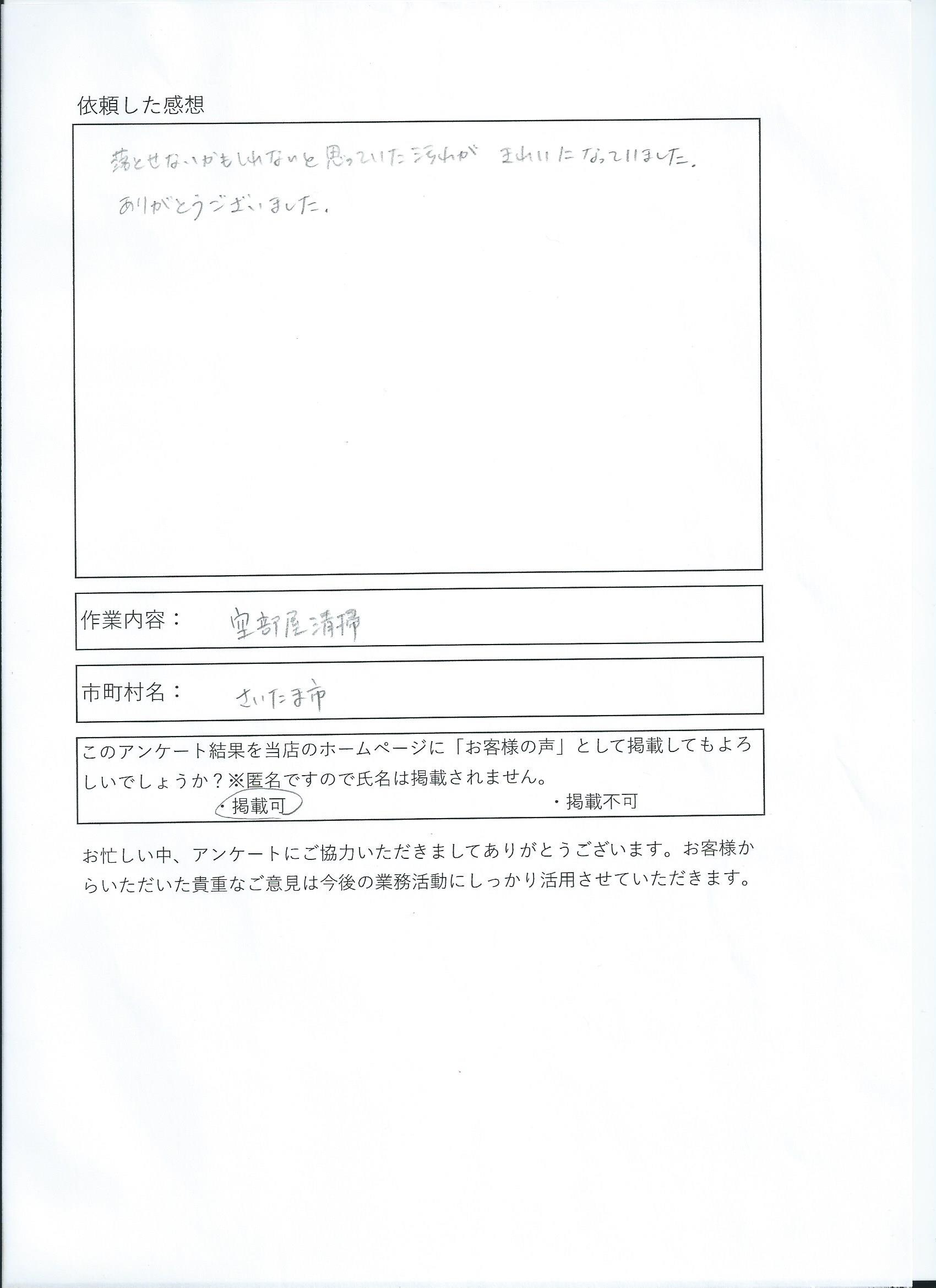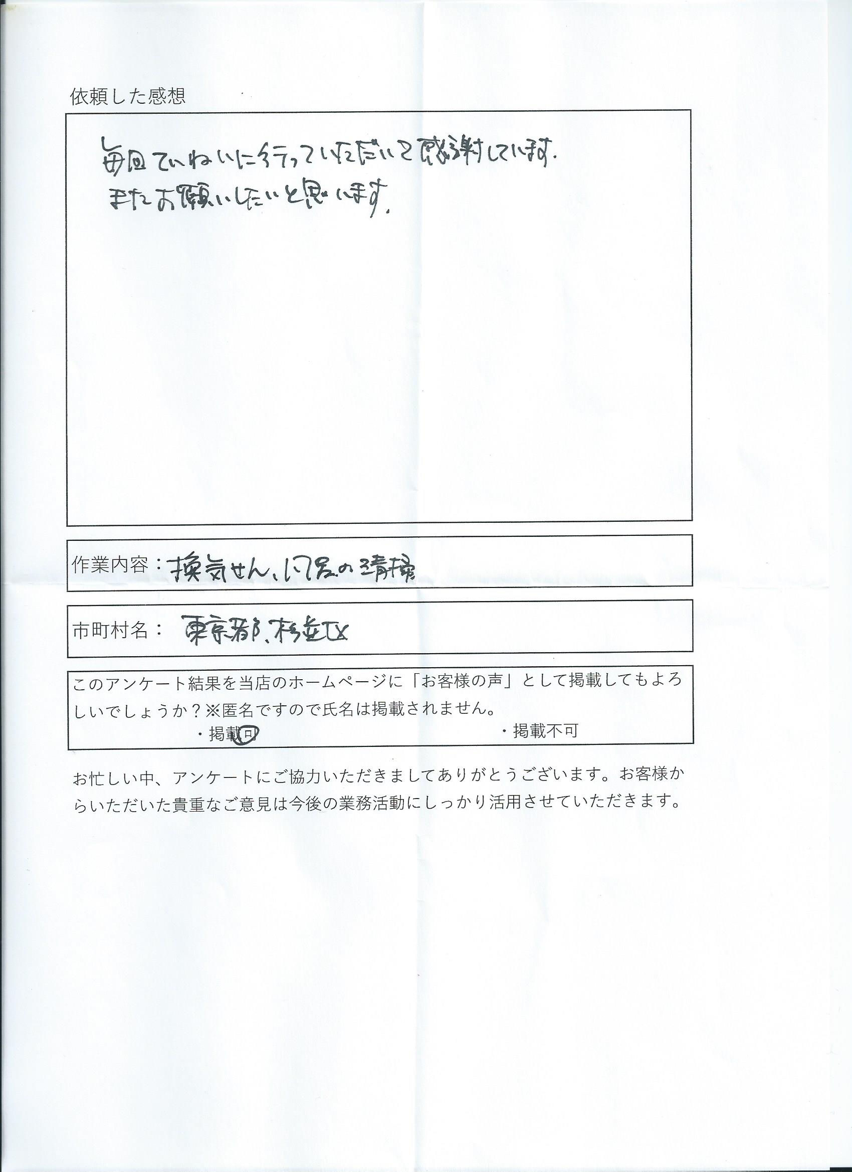 かなり汚れが強かったのですが、大変きれいにして頂き、ていねいな仕事ぶりに感謝しております。